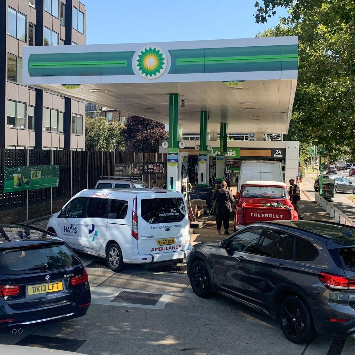 Мөн газрын тосны үйлдвэрүүд цар тахлаас шалтгаалан хэвийн ажиллаж чадахгүй байгаа зэргээс үүдэн шатахууны нийлүүлэлт багасснаас болж Бритиш Петролиум компани 1,200 орчим шатахуун түгээх станцаа түр хаах шийдвэр гаргасан байдлыг улам дордуулжээ. Иргэд шатахууны түгээх станц дээр хэдэн өдрөөр дугаарлаж, зарим газар жолооч нарын хооронд зодоон болж, нийгмийн эмх замбараагүй байдал үүсч, цагдаа нар шатахуун түгээх станцуудын үйл ажиллагааг хяналтандаа авахаас өөр аргагүй болжээ.